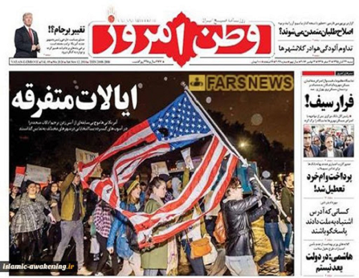 (11) تیترهای روزنامۀ "وطن امروز" در دنیا معروف است... بهترین تیتری که برای آشوبهای آمریکا زده شد. "ایالات متفرّقه" ، به جای ایالات متّحده!