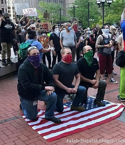 (8) سالها پرچم شیطان بزرگ را زیر پا گذاشتیم. ولی یه عدّه غربزده ایراد گرفتند که آمریکا قدرتمند است، و ممکنه عصبانی بشه. غربزدگان ایرانی میگفتند پا گذاشتن روی پرچم آمریکا، بیفرهنگیه! الان دو هفته است که غربزدگان وطنفروش در ایران، هیچی نمیگن!