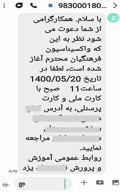 ... هر چه صبر کردیم که نوبت سنّی به ما نرسید! حتّی تصمیم گرفته بودم که برم یکی از استانهای جنوبی، تا بدون نوبت سنّی واکسن بزنم!... یعنی تا این حدّ !! که خداروشکر دو روز پیش، این پیامک اومد؛ و خدایی خیلی خوشحال شدم...