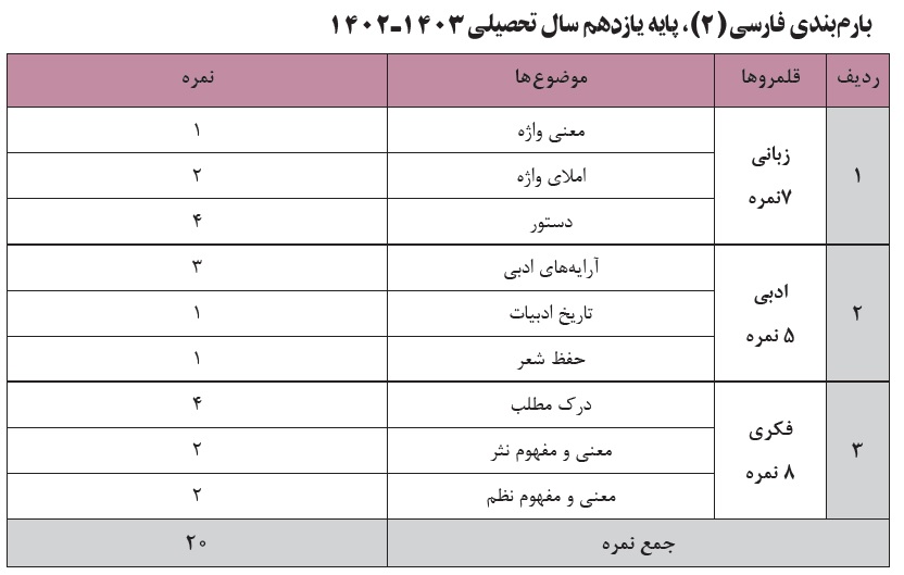 . . سؤالات امتحان تقریباً بر همین اساس طرّاحی میشوند؛ مگر اینکه برخی دروس اندکی عقب باشیم و به سرفصل نرسیده باشیم، که ممکنه در حدّ 0/5 یا مثلا 1 نمره بالا و پایینتر باشه. . موفّق باشید. . .
