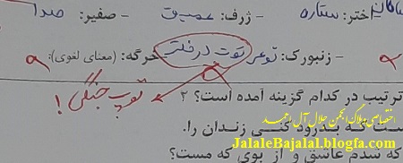 سوتی امتحانی از نوع غلط املایی . از فردا امتحانات داخلی، و از هفتۀ بعد، امتحانات ترم اوّل شروع میشن! از حالا دارم به سوتیها فکر میکنم...! . این چند سوتی از برگههای امتحانی همین یکی-دو هفتۀ گذشته: . (1) بدون شرح!