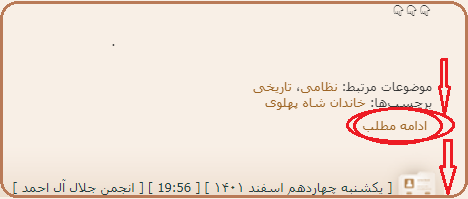 موضوعات مرتبط: تاریخی برچسبها: خاندان شاه پهلوی [ سه شنبه دوم اسفند ۱۴۰۱ ] [ 19:35 ] [ انجمن جلال آل احمد ]