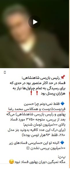 . خیانت خاندان ربع شاه پهلوی به مردم! . حتّی صدای طرفداران سلطنت پهلویها را هم درآورده...! . شما را با عکس بالا و متن داخلش تنها میذارم که خودتون قضاوت کنید که چه خبره...! . . . برچسبها: خاندان شاه پهلوی [ دوشنبه بیست و هفتم شهریور ۱۴۰۲ ] [ 22:59 ] [ انجمن جلال آل احمد ]