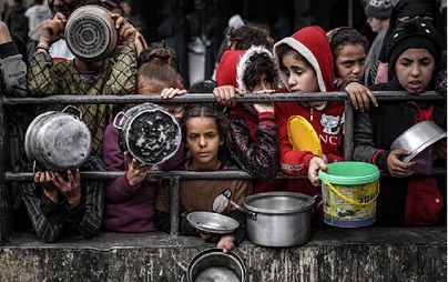 . (2) کودکان عزّه به جای بازی و شادی و درسخواندن، هر روز در صف گرفتن غذا