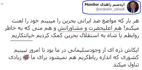 در توصیف و معرّفی رضا ربع پهلوی نوشته: سرباز رضاشاه دوّم- صهیونیست!! . . (2) به نظرتون الان دیگه نیازی هست که اعلام بشه که آشوبهای خیابانی، کارِ مردمِ ایران نبوده؟؟